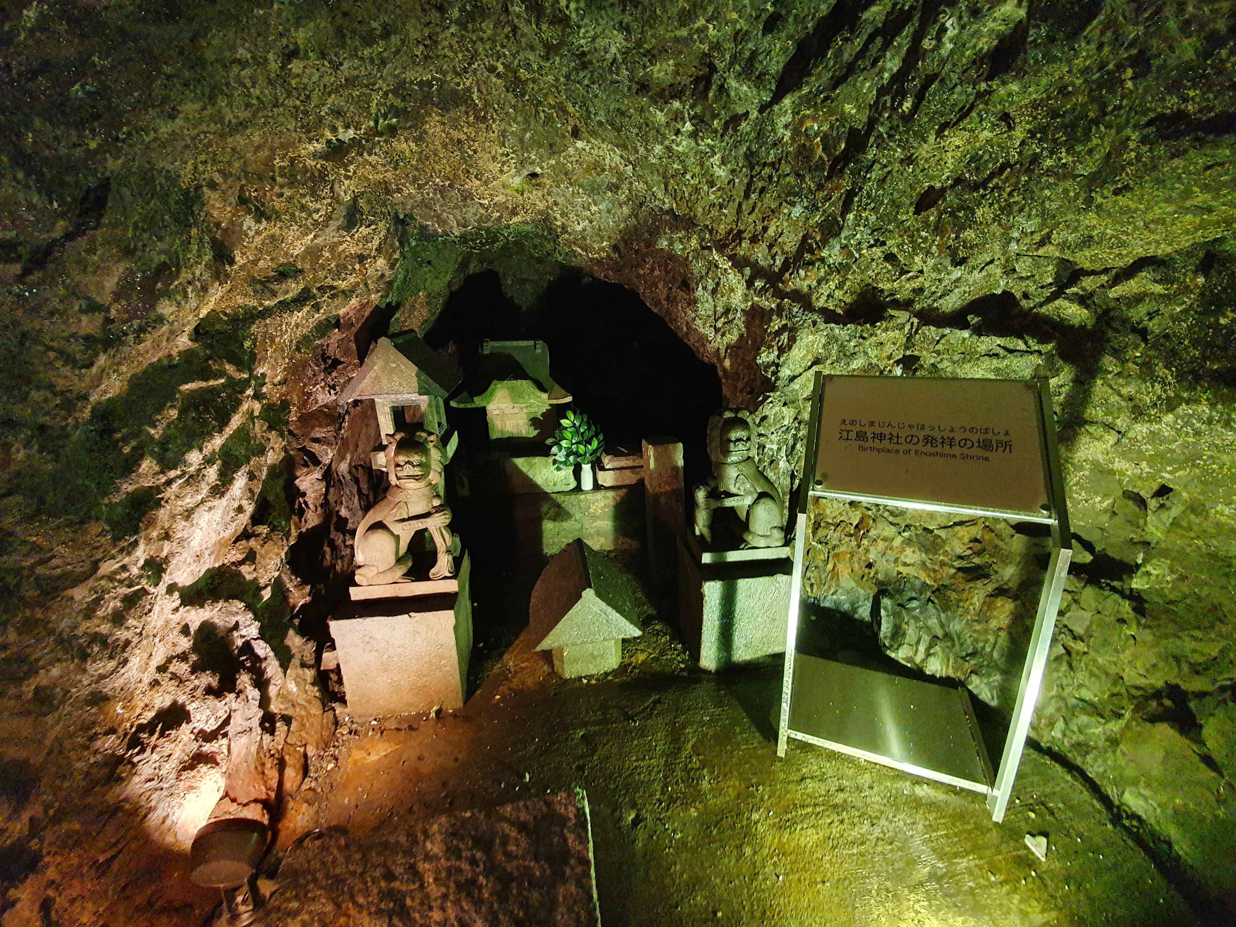 Although there are many, many stairs on Enoshima, it is definitely worth hiking to the top! The top of Enoshima island houses the observation tower, Gardens, and Caves. Although these have a slight extra cost, they are definitely worth it. The ‘seacandle’ or observation tower at the top of Enoshima Island offers fantastic views over the ocean and back towards the mainland, great for photos! After wandering through the incredible Samuel Cook gardens surrounding the seacandle, we headed on to find the Iwaya caves. The ancient Iwaya caves were said to connect to the ‘wind cave’ in Mt. Fuji, that’s why it blows cool air all year round. The caves also house several statues and monuments that were once created there. Only the ‘first cave’ was open on the day we visited due to rough seas (a typhoon in the west of Japan), however this cave still expanded a long 156 metres. This island is such a time capsule, it was a fantastic day out and safe to say we definitely got our step and stair count that day.