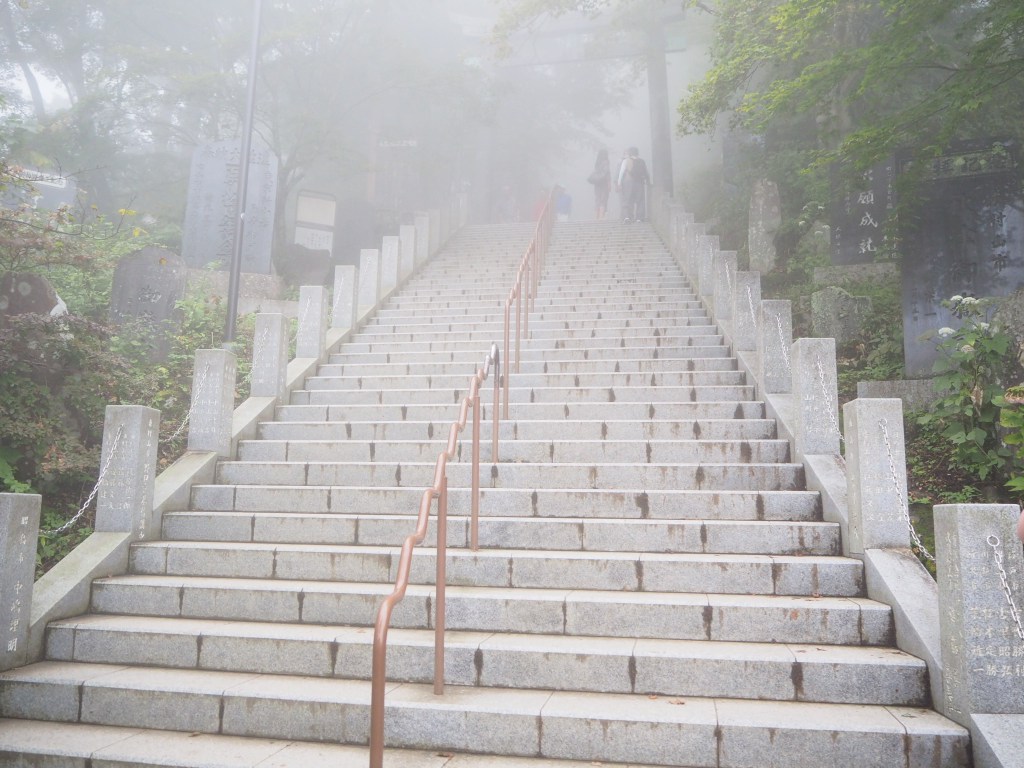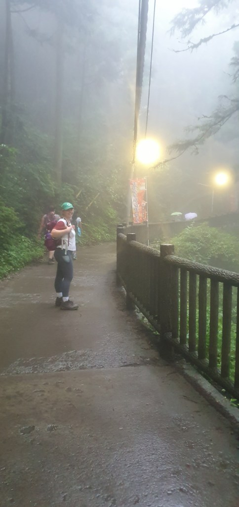 The next trail we decided to adventure along was to the mountain’s waterfalls and rock garden. Unfortunately, due to time restictions and loss of daylight, we opted out of the rock garden this time. But, it might have been a safer option. The waterfall trail led us to roots, rocks with supporting rope, and terrifying rusted metal stairs. But, the waterfall itself was so peaceful and gorgeous and the water was stunningly clear! The rocks were covered in bright green moss and a tree long was the best route to take over the lightly flowing stream. Sound a little like we walked into Narnia? That’s what we thought too! But, alas, mother nature had a different plan, and as the rain started again, we thought we should start the hike back up to the shrine. After the 危ない (abunai=dangerous) trek leading to the waterfall, we opted for a different route back up. Wasn’t a whole lot better. I mean, it was definitely safer but the old steps seemed to go on forever, but, have to get those leg gains.