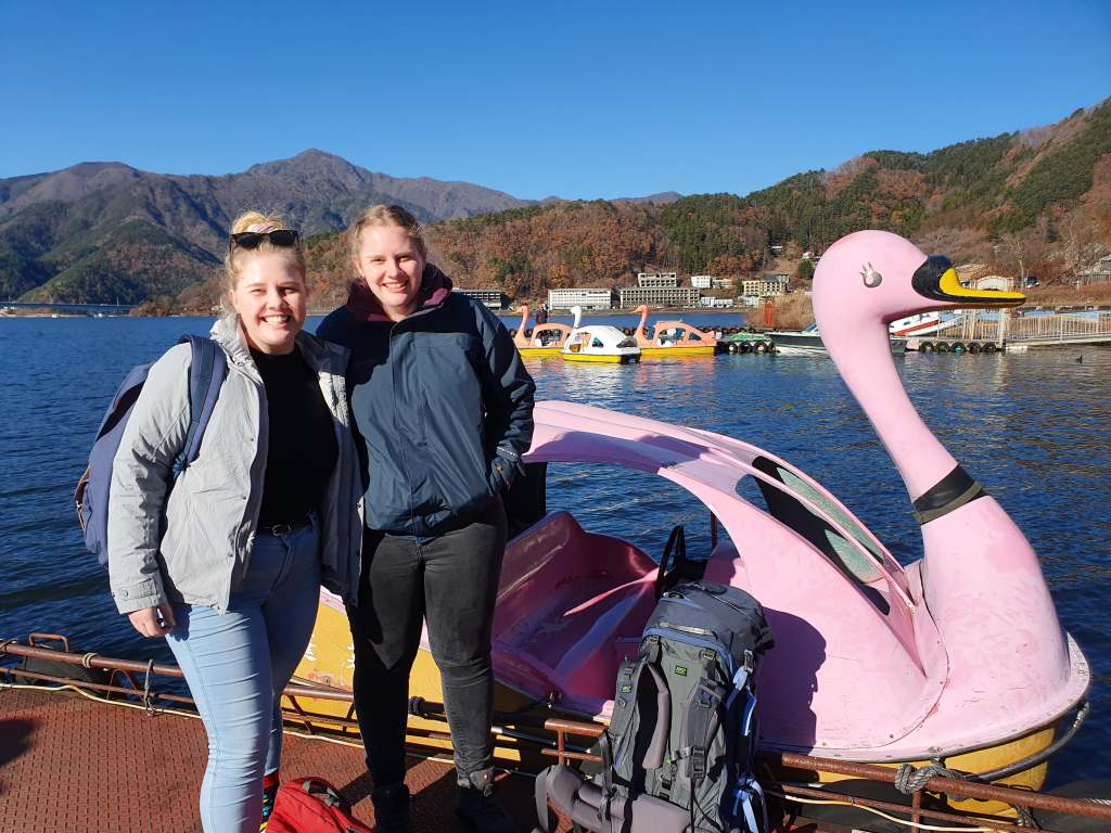 After a quick stop for lunch we decided to keep going and caught a taxi to our next destination, Lake Kawaguchi. There are a total of 5 lakes that surround Mt Fuji, but Kawaguchi is by far the most popular and touristy. The first thing we saw when getting out of the taxi were the pedal boats. Almost anywhere with water in Japan you will find these boats! So, we hopped straight on and went for a paddle around the lake, admiring the view and keeping out of the way of the bigger boats.