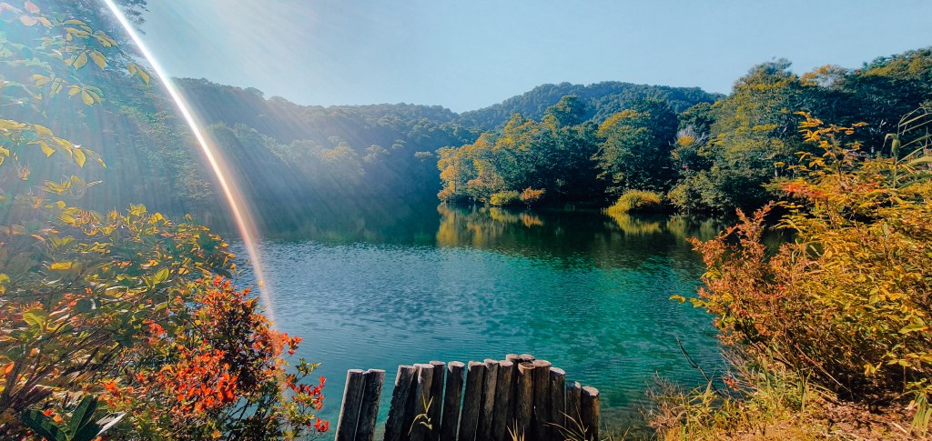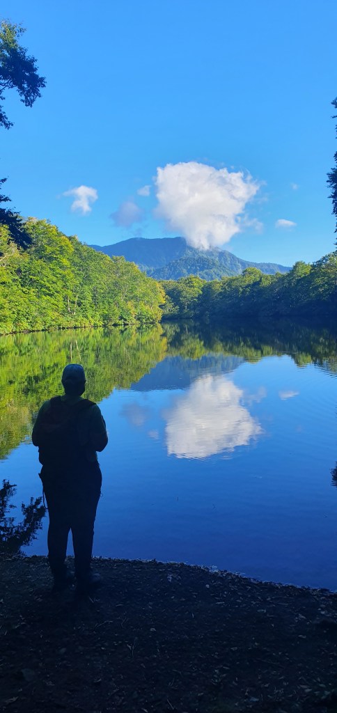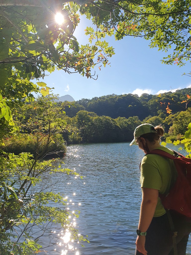 Next was to another hike we’d found when looking at hiking around Hakuba. Kama-Ike was a quaint little 2km stroll around a pond (though a very large pond). Compared to the morning on the alps with every other hiking-lover in Japan, it was extremely quiet and we only passed 2 different groups around the pond. The peace and quiet was a lovely change and a perfect way to end the day. We watched as the sun got lower in the sky and the clouds and surrounding mountains reflected off the still water. By the time we got back to the car, its safe to say that we were both exhausted!