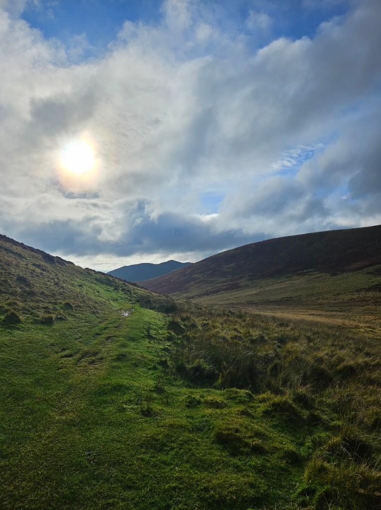 Now we’re close to the highland cows! Head down Allemuir and veer left to go around the next peak (don’t go up the next hill!). Keep an eye out here because the cows will be around this area on the lower hills. They’re very quiet and you can go up quite close to them and they won’t be bothered, but please always remember to be cautious around animals.