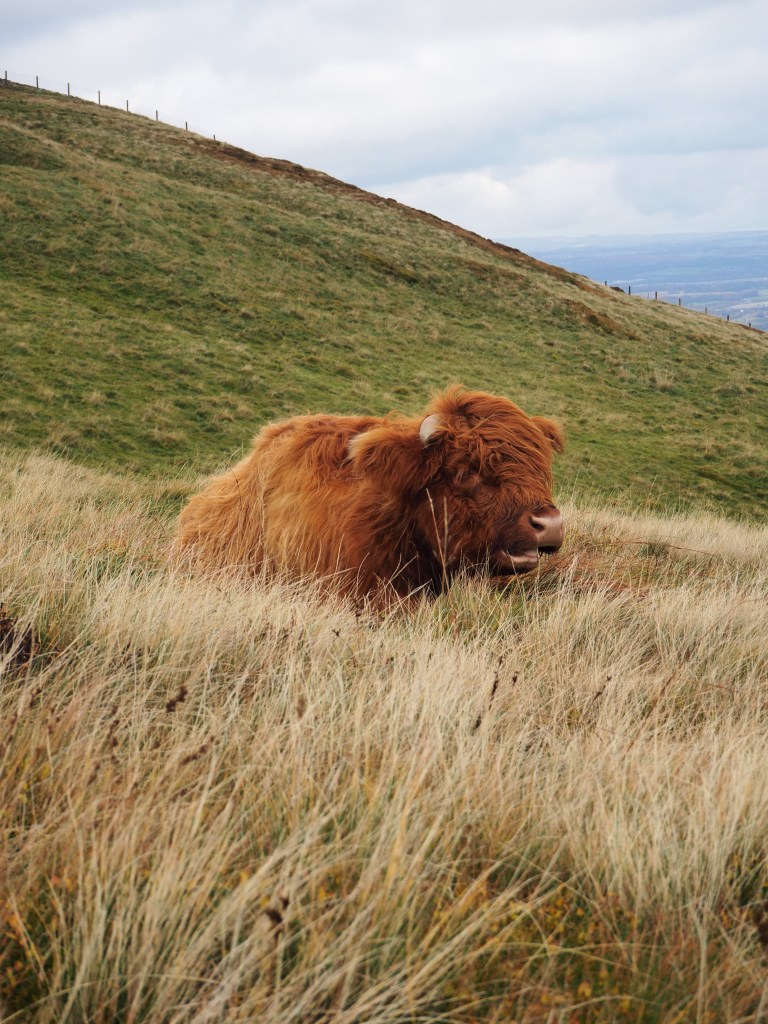There are lots of different trails in the Pentlands, but the one that takes you to the highland cows is via Allemuir Hill.